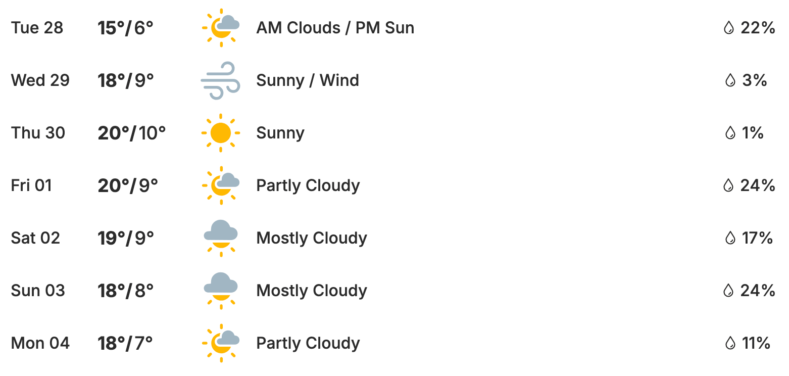 The weekend turns a bit more muted - still mild, but mostly cloudy - so not a washout, just not quite peak picnic vibes. Overall though, a solid spring week with a few golden windows to get out and enjoy it.